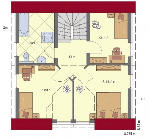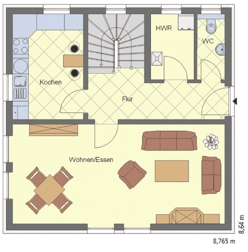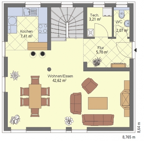 Außenmaße: 8,765 x 8,64 m